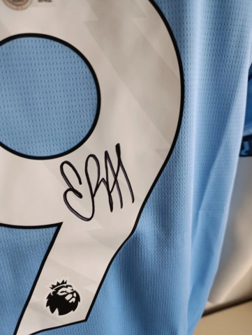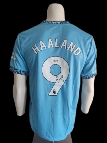Manchester City shirt gesigneerd door Erling Haaland met Beckett certificaat van echtheid.