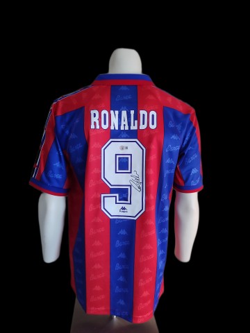 Fc Barcelona shirt met handekening van Ronaldo. Met Beckett cerificaat