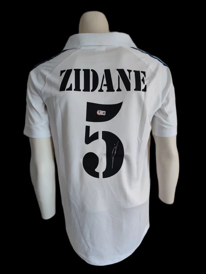Real Madrid shirt, persoonlijk handgesigneerd door de legendarische Zinedine Zidane. Dit item wordt geleverd inclusief Beckett certificaat van echtheid (COA).